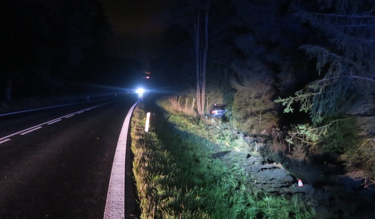 Včera krátce po deváté hodině večer došlo na silnici č. 64 u Aše, v blízkosti odbočky ke známému restaurantu Na Patě, k dopravní nehodě, během které vyletěl osobní automobil Mercedes ze silnice a skončil v lese.