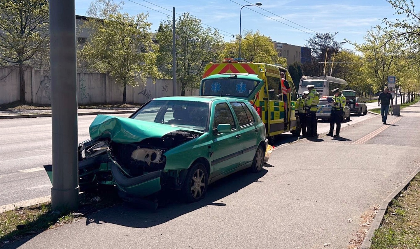 Jen krátce po první dopravní nehodě došlo v ulici Edvarda Beneše v Plzni k další. Osobní vozidlo značky Volkswagen zde přejelo do protisměru a čelně narazilo do sloupu.