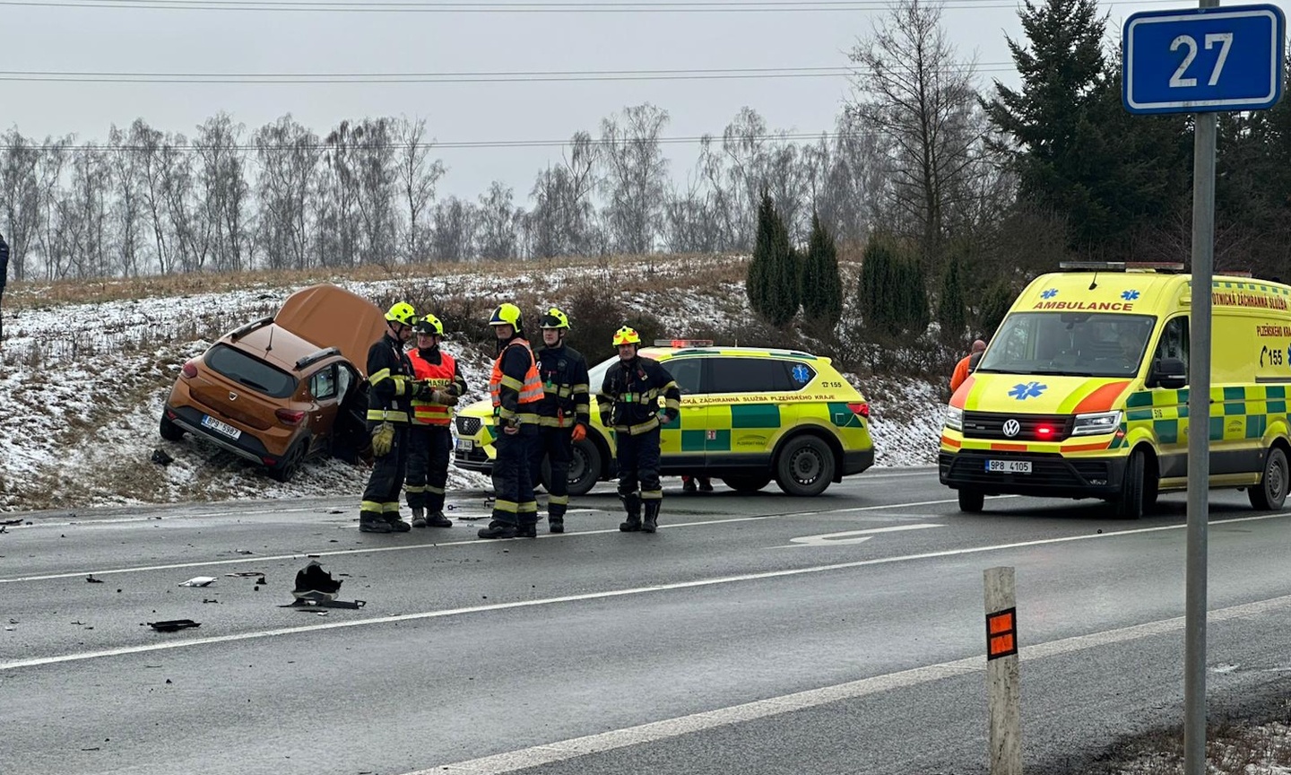 Dnes před půl jedenáctou dopoledne došlo na hlavním tahu z Plzně do Plas u Třemošné k dopravní nehodě, během které se střetly dva osobní vozy. Z místa bylo hlášeno zranění několika osob, takže k nehodě okamžitě vyjely všechny záchranné složky.