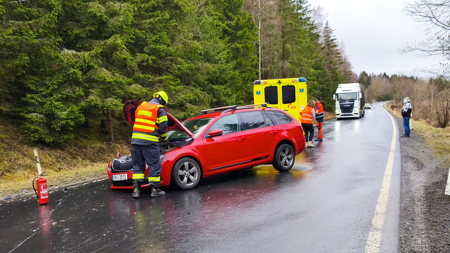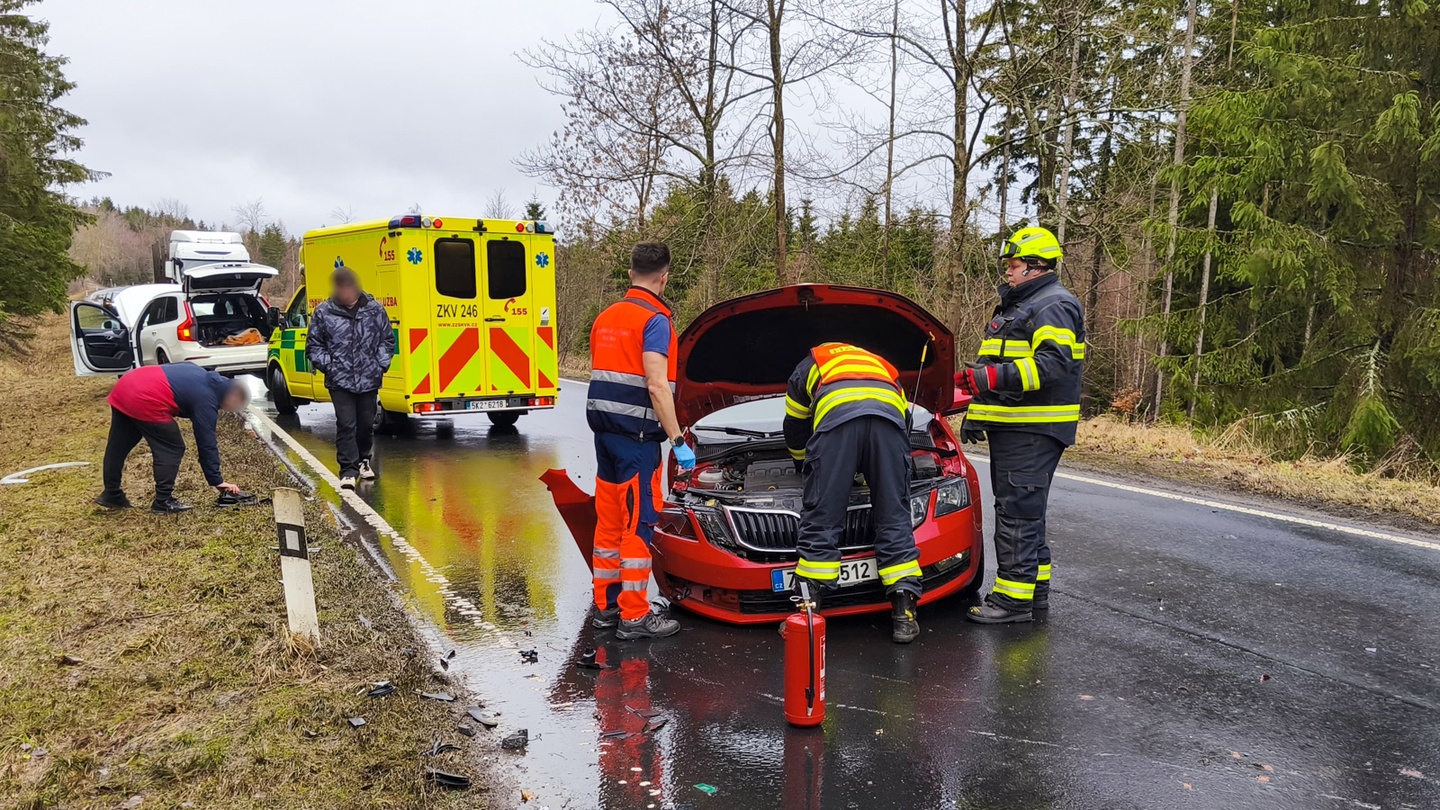 Dnes krátce před půl desátou dopoledne došlo na silnici číslo 208 mezi Německým Chloumkem a Bochovem na Karlovarsku k dopravní nehodě, během které se střetl osobní automobil značky Volvo s vozem značky Škoda.