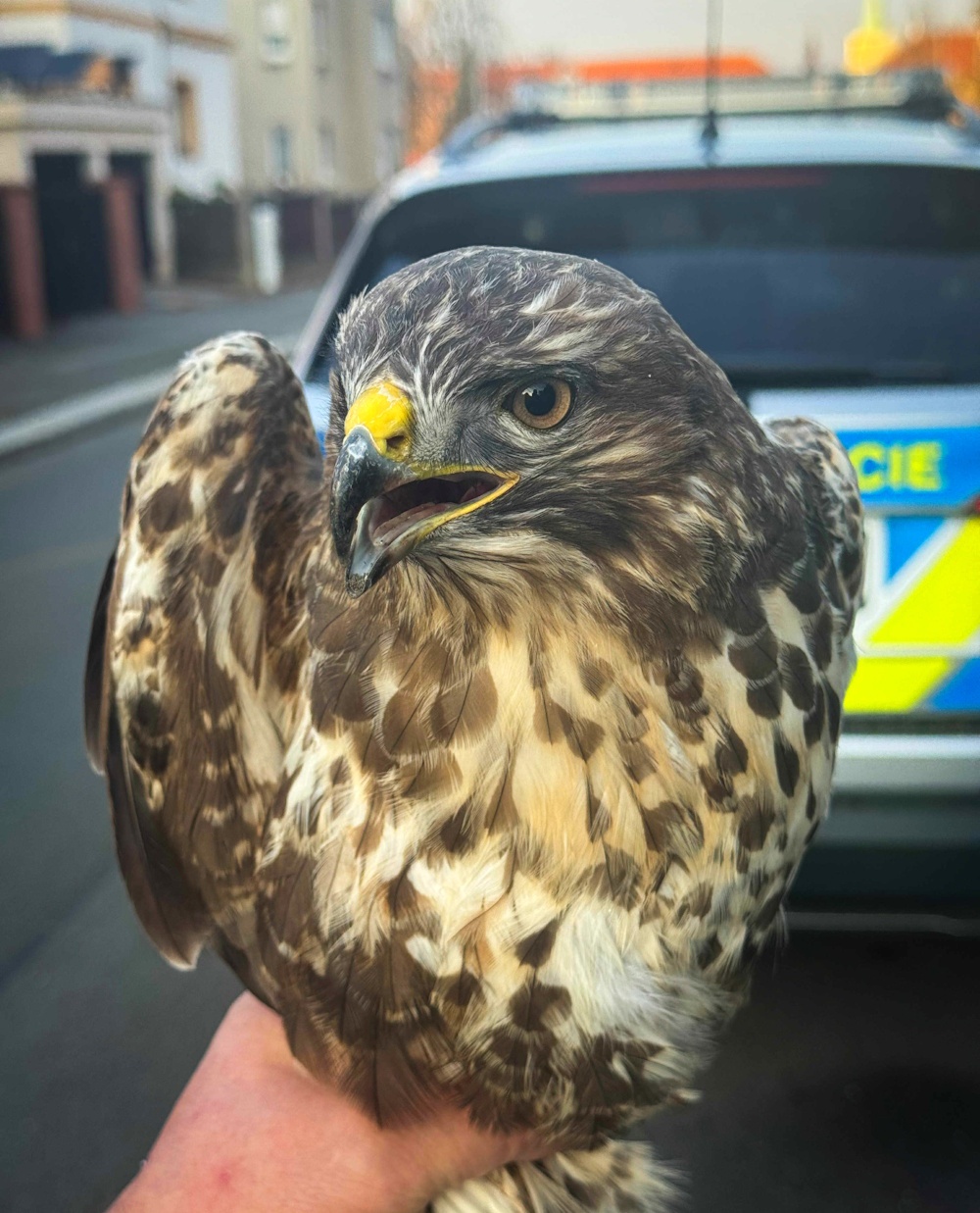 Nevšední zásah mají za sebou policisté z Rokycan. Během běžné hlídkové služby si všimli na silnici ležícího dravce, který se zjevně nemohl sám zvednout.