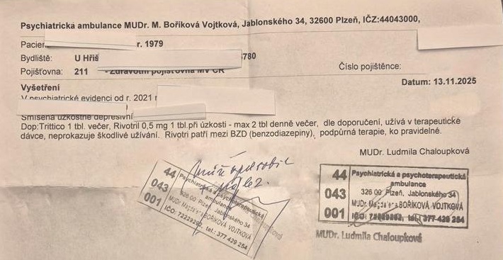 "Ve středu 12. listopadu kolem druhé hodiny odpoledne byl šestačtyřicetiletý řidič opět zastaven a kontrolován hlídkou dopravní policie v centru města. Na místě se podrobil testu na přítomnost omamných a psychotropních látek, který byl pozitivní. Následně se na výzvu policistů podrobil lékařskému vyšetření spojenému s odběrem krve a moči, a další jízda mu byla zakázána.
