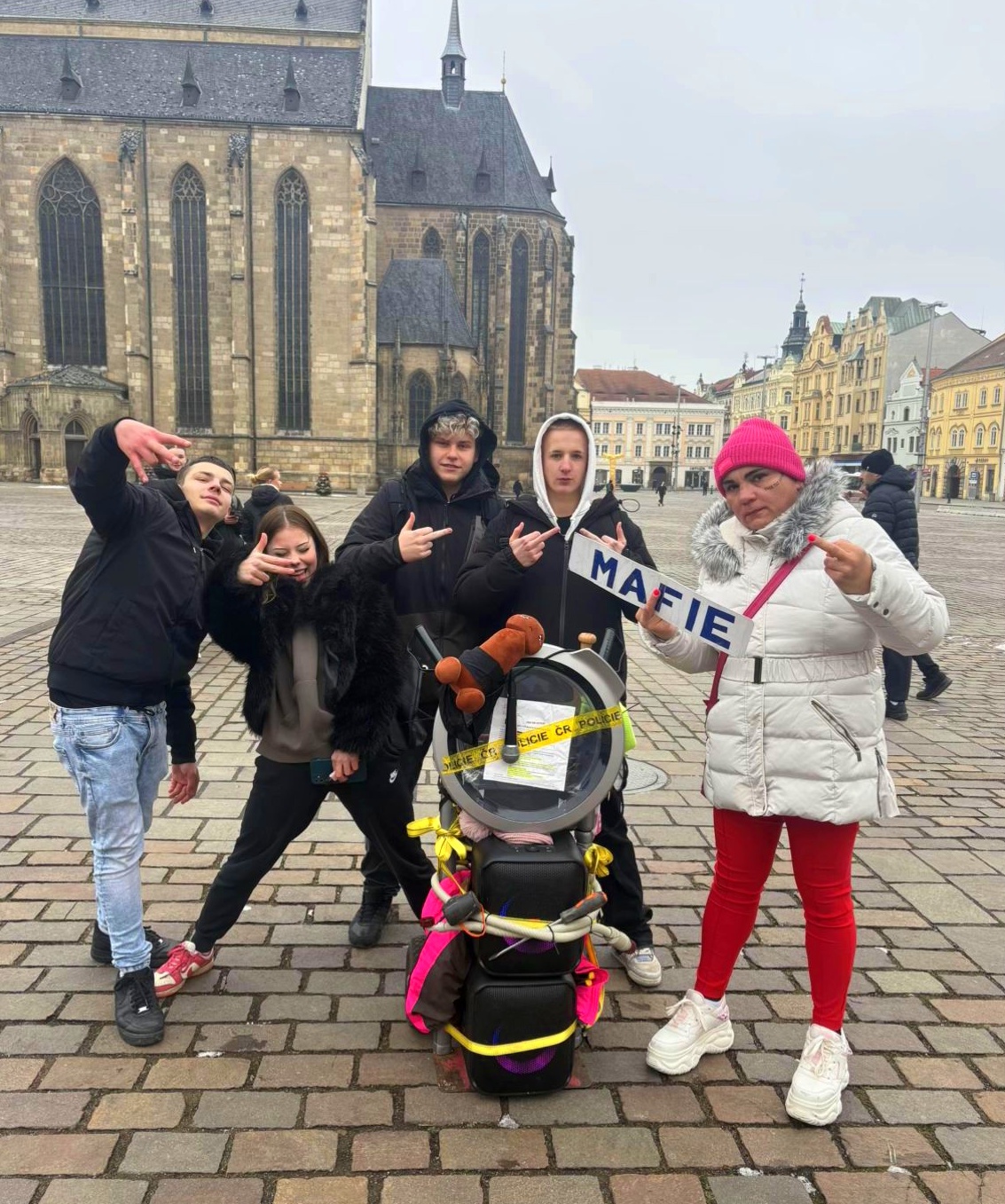 "Před jedenáctou hodinou v noci byly hlídky nuceny zasáhnout na náměstí Republiky vůči později zjištěnému muži, který výrazným způsobem rušil veřejný pořádek hlasitou hudbou z reproduktorů. Zakuklený muž s baseballovou pálkou v ruce tančil na střeše nastartovaného vozu, nechtělo se mu slézt dolů a prokázat svou totožnost a výzvy strážníků ignoroval," sdělila mluvčí k plzeňákům dobře známé figurce města.