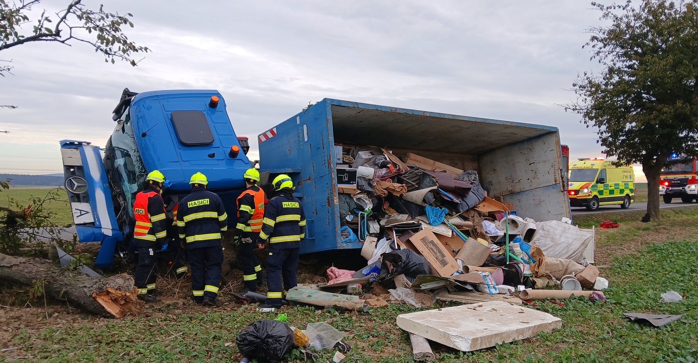 Dnes před devátou hodinou dopoledne došlo na silnici II/230 z Přeštic na Přestavlky nedaleko Oplotu k dopravní nehodě, během které nákladní automobil s odpadem vyjel ze silnice, přerazil strom a převrátil se na bok.