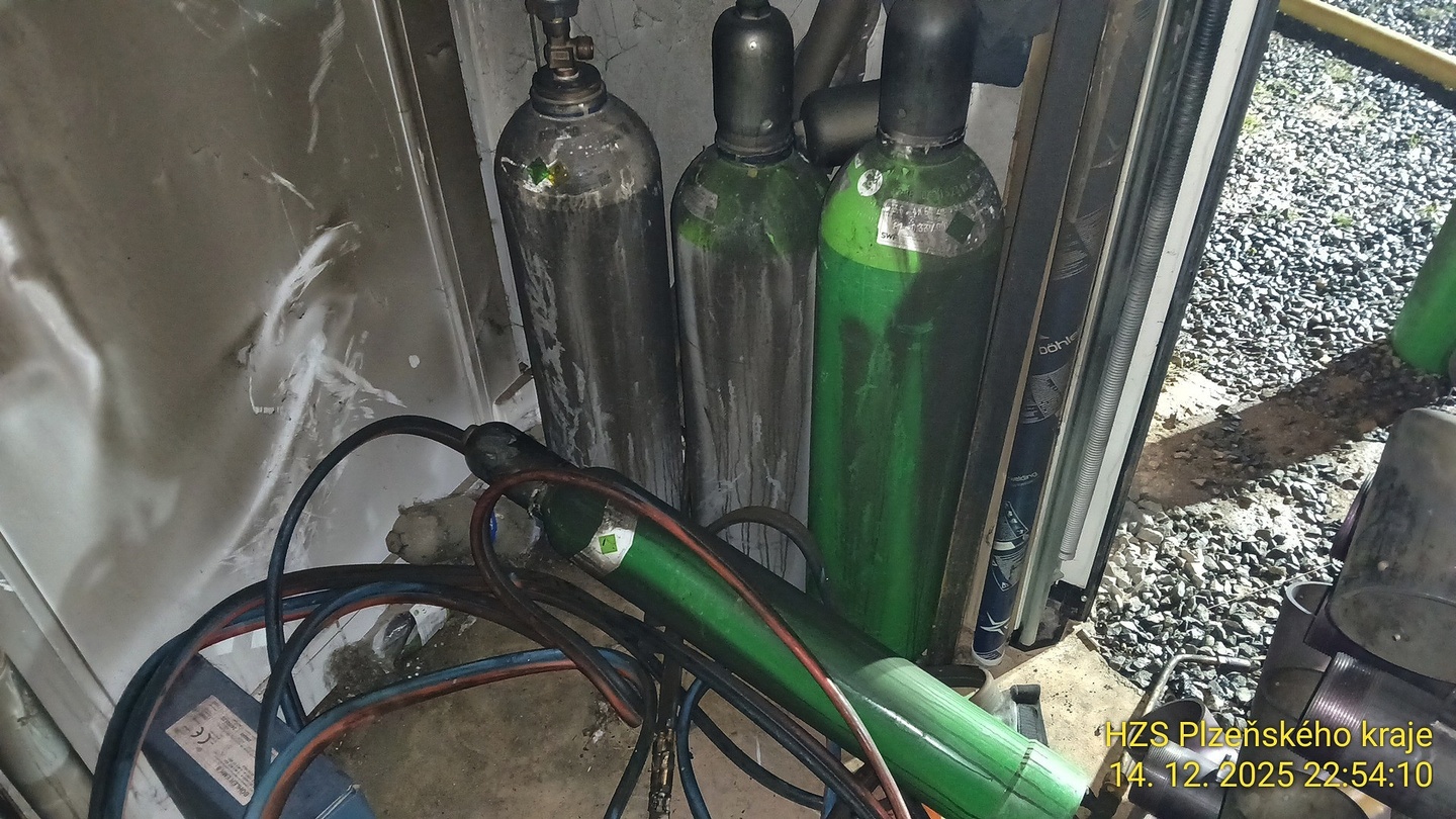 Likvidaci požáru komplikovalo větší množství tlakových lahví