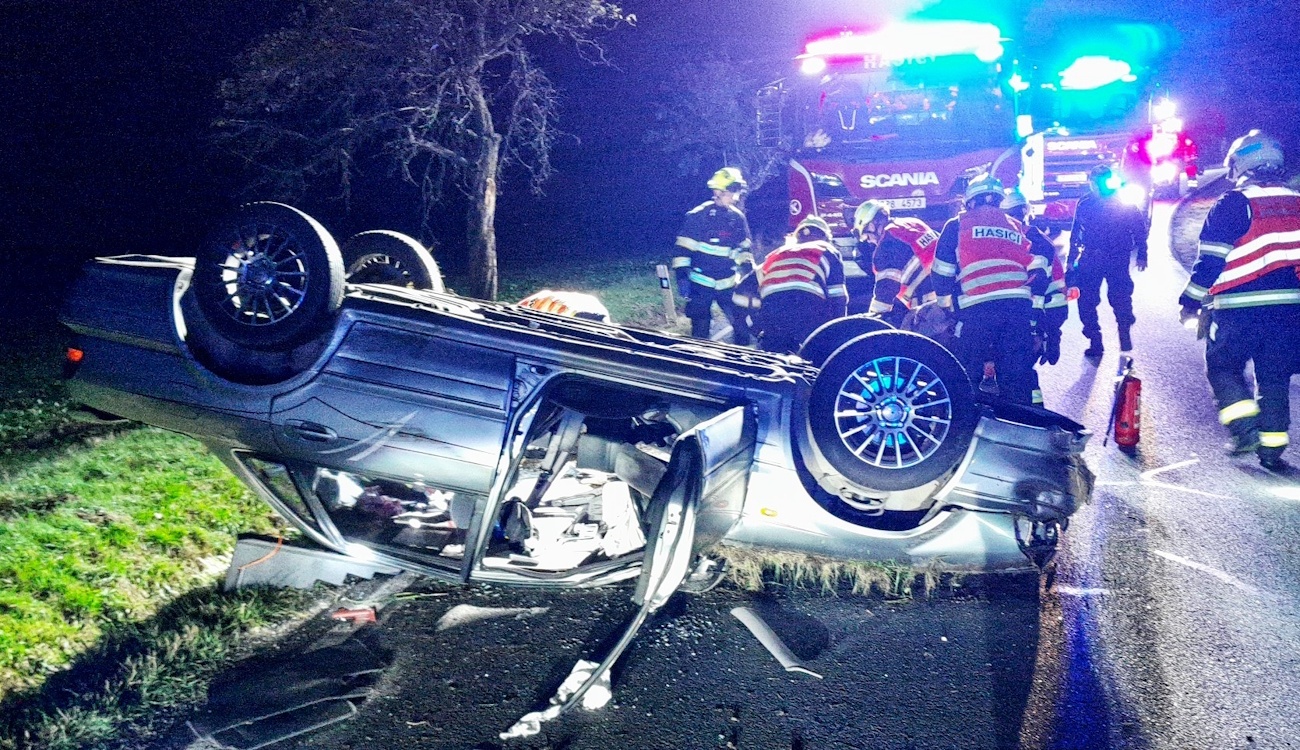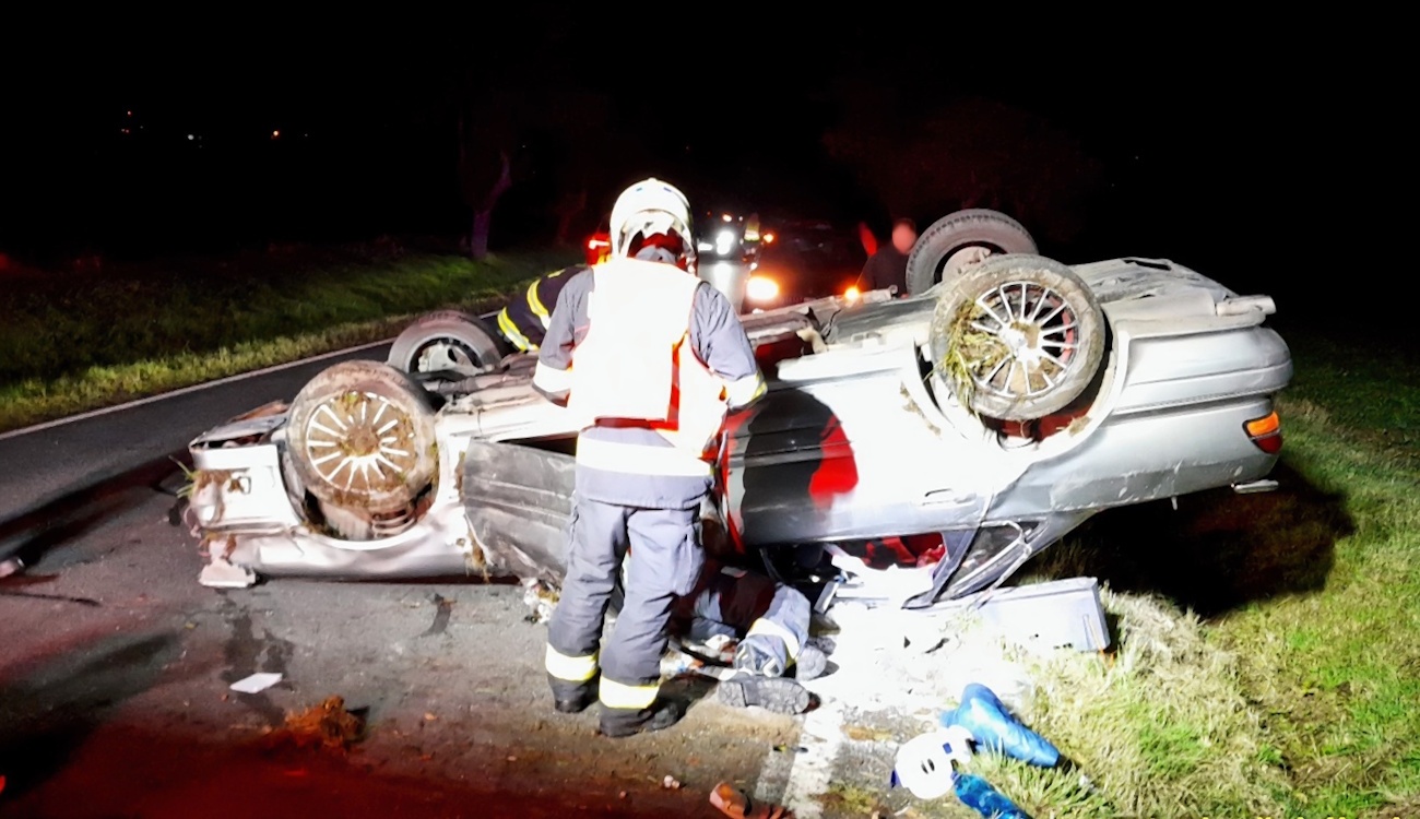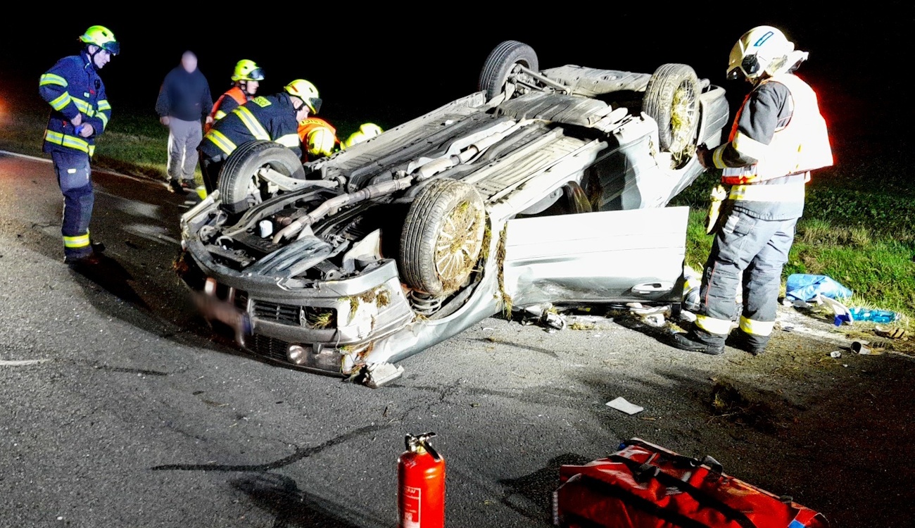 Včera večer kolem půl osmé došlo na silnici II/205 u Nekmíře k vážné dopravní nehodě, během které se osobní vůz převrátil na střechu.