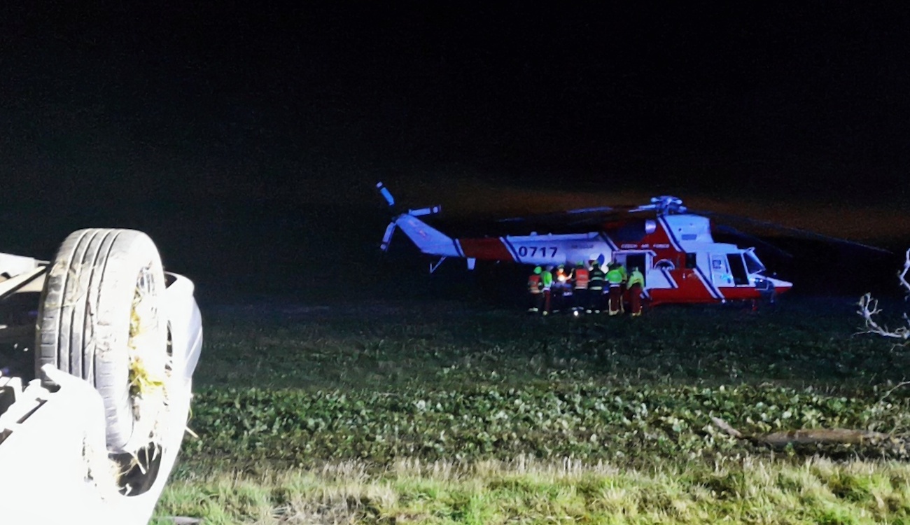 Z místa bylo hlášeno zranění a zaklínění řidiče, takže k nehodě okamžitě vyjely všechny záchranné složky a povolán byl také vrtulník letecké záchranné služby z letiště v Líních.
