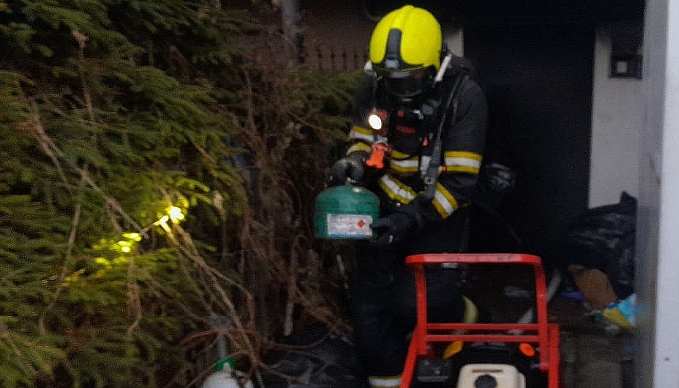 "Policisté dorazili na místo jako první. Už z dálky byl patrný hustý černý dým stoupající z objektu, po příjezdu hlídka zmonitorovala situaci a zjistila, že sklepní prostor je celý zasažen rozsáhlým požárem. Policisté si všimli několika propanbutanových lahví, které se nacházely přímo v prostoru hoření a hrozilo tedy bezprostřední riziko exploze.