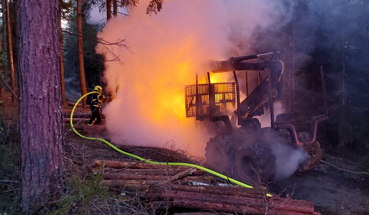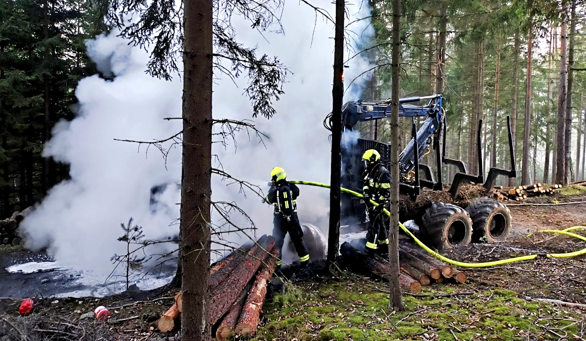 Krátce před sedmou hodinou vyjela jednotka profesionálních hasičů z Aše k nahlášenému požáru vyvážecího traktoru v lese u Dolních Pasek nedaleko Aše na Chebsku.