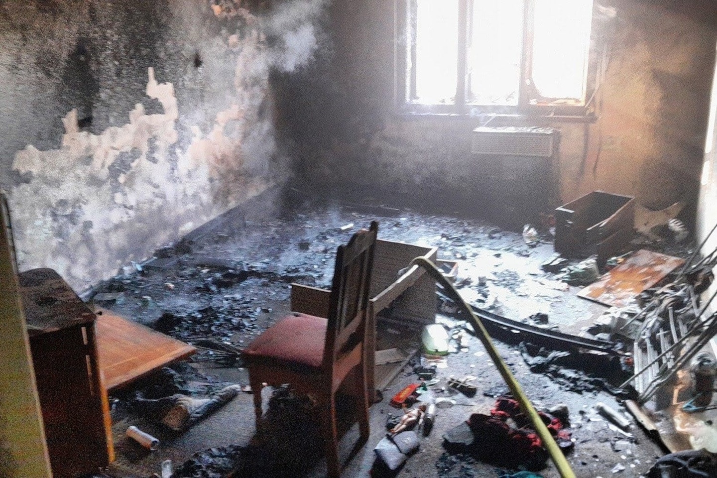 Ke druhému, podstatně závažnějšímu požáru došlo o patnáct minut později v ulici Politických vězňů na Borech, kde z okna bytu ve druhém patře budovy podle svědků začaly šlehat plameny.