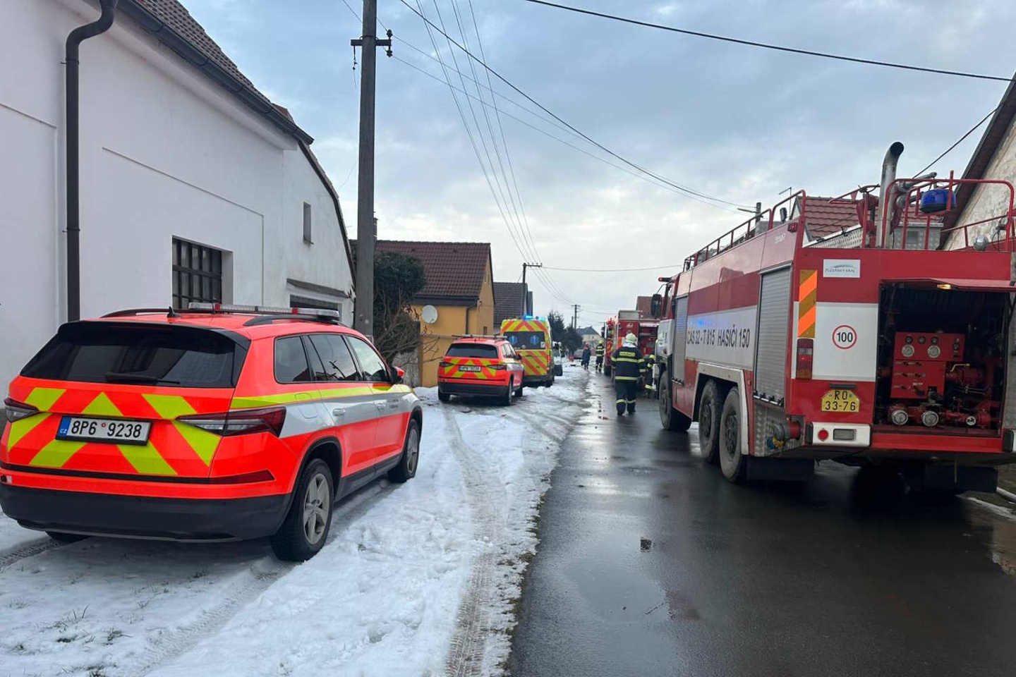 Dnes po půl jedné odpoledne vyjelo celkem jedenáct hasičských jednotek s patnácti kusy techniky k nahlášenému požáru dvou přístavků u rodinného domu ve Vstiši nedaleko Dobřan.