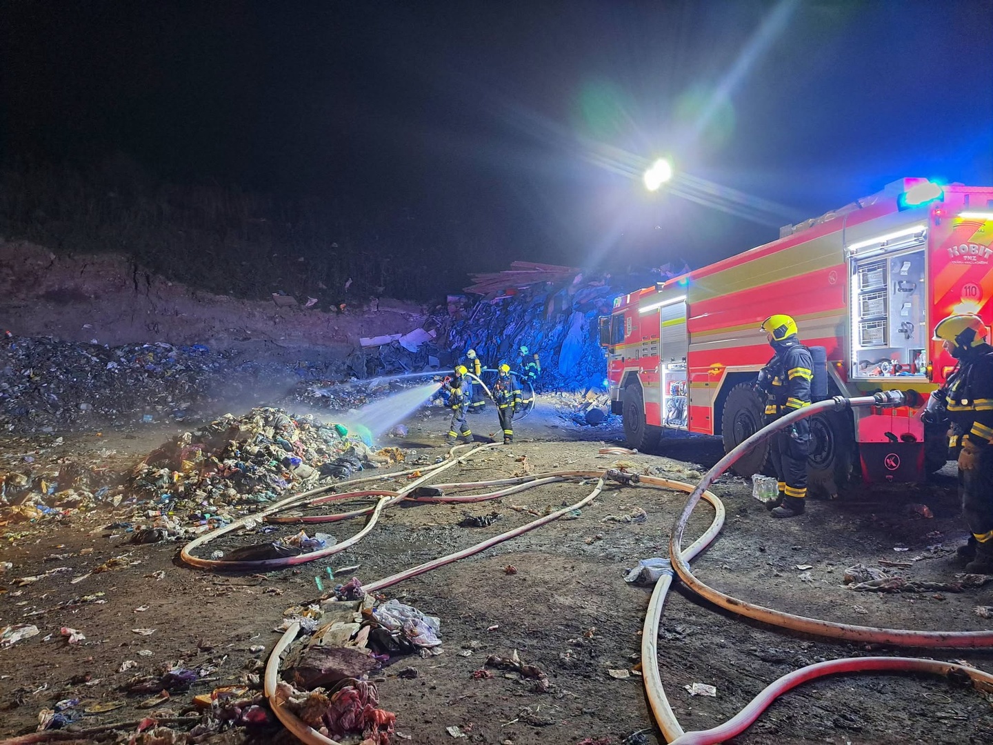 V noci ze soboty na neděli před třetí hodinou vyjíždělo několik jednotek profesionálních a dobrovolných hasičů na skládku Vysoká u Dobřan, kde došlo k požáru odpadu na překládacím místě.