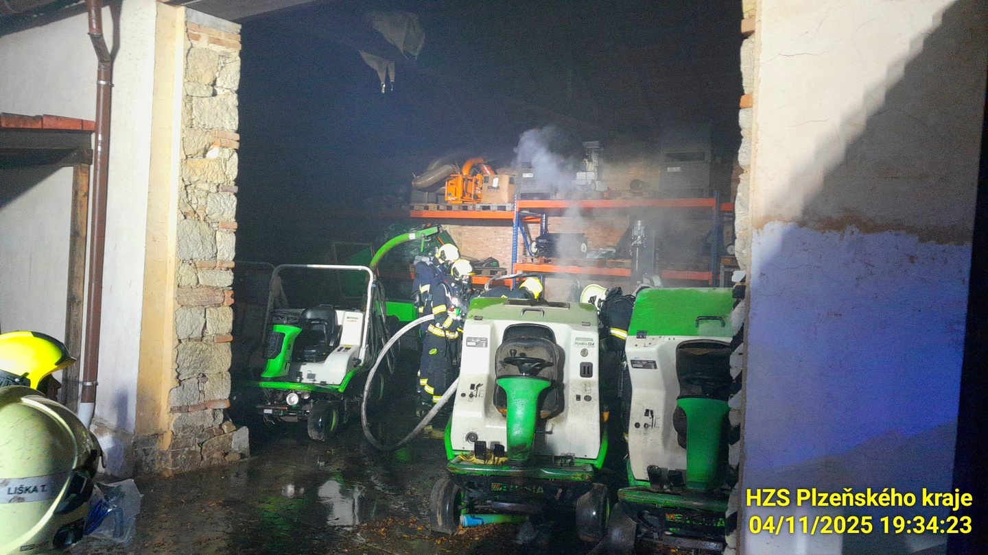 "Mohu potvrdit, že uvnitř se nacházela zahradní technika a jednu z větších sekaček požár zcela zničil. Odhadovaná škoda je přibližně 400 tisíc korun," uvedl nám mluvčí hasičů.