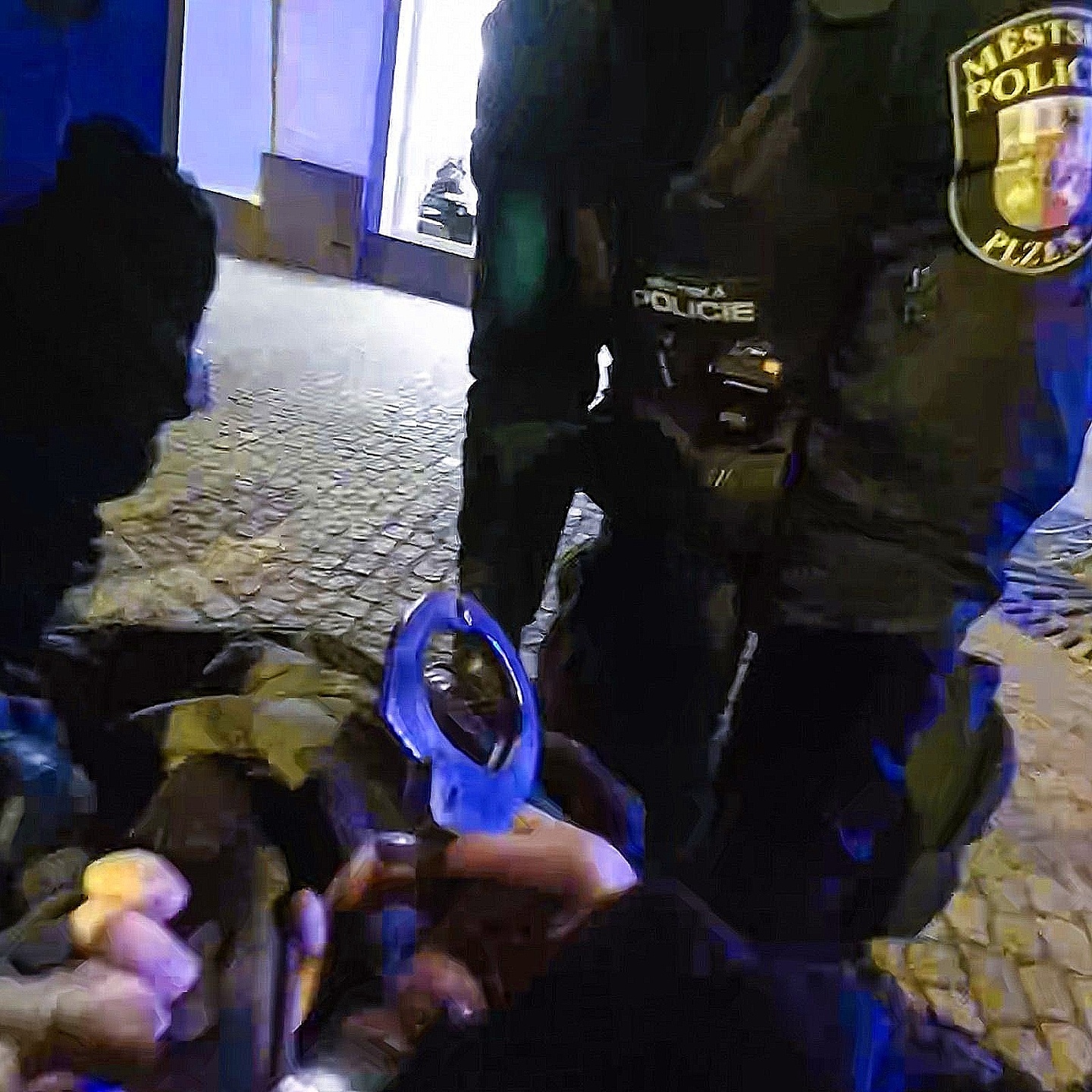 "Přestože byl muž důrazně upozorněn, aby svého jednání zanechal, pokusil se do provozovny znovu vstoupit. Hlídka mu v tom zabránila, načež muž strčil do jednoho ze strážníků, aby si cestu dovnitř vynutil. Vzhledem k jeho jednání byly použity donucovací prostředky, muž byl sveden na zem a byla mu přiložena pouta," pokračovala mluvčí s tím, že muž i nadále kladl aktivní odpor a odmítal spolupracovat.