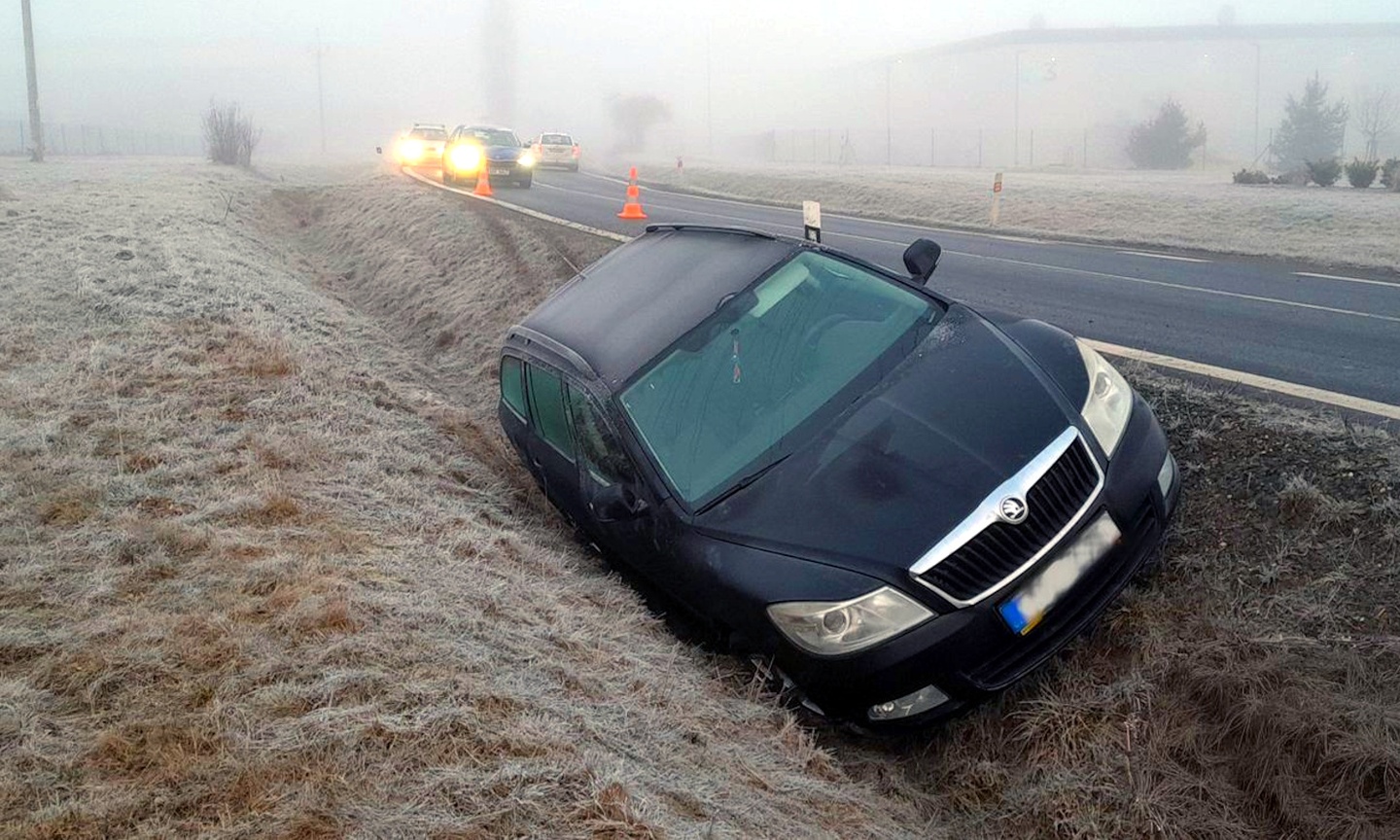 K nehodě došlo i u Nezvěstic, kde řidič na namrzlé komunikaci ztratil kontrolu nad vozidlem a havaroval. I zde byla příčinou namrzlá vozovka, která řidiče zřejmě překvapila.