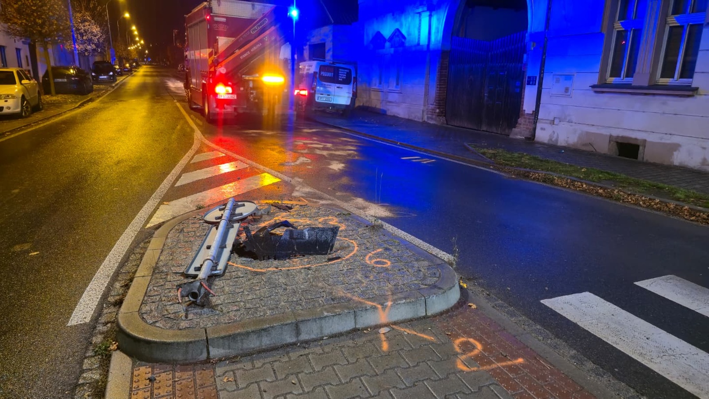 "Podle dosud zjištěných skutečností jel řidič osobního vozu značky Škoda narozený v roce 1969 od Chebské ulice směrem k Prvnomájové. Nejprve najel na vyvýšený obrubník a zlikvidoval tam dopravní značení, čímž si zároveň poškodil i své vozidlo. Poté pokračoval v jízdě a vůz odstavil v blízké ulici.