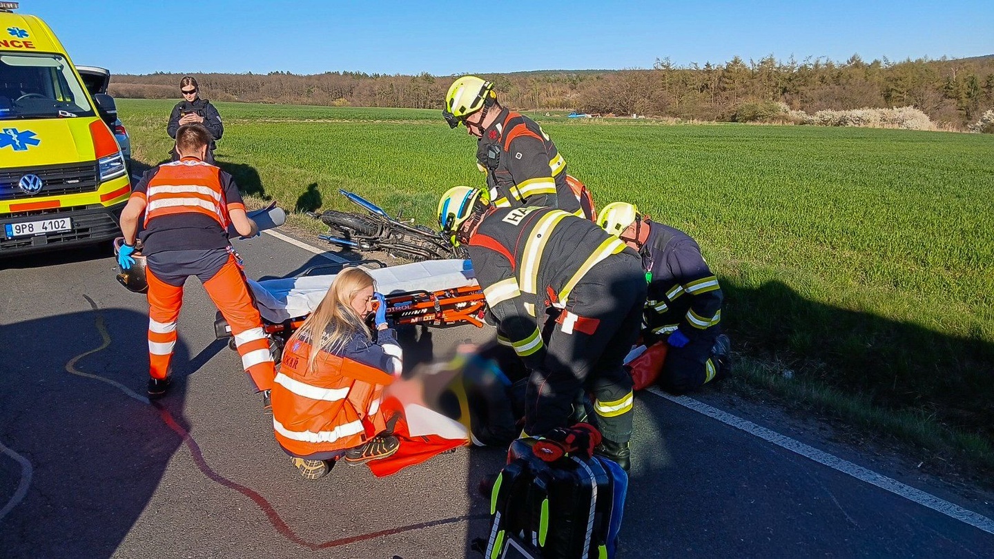 Z místa bylo hlášeno zranění jezdce, kterému první pomoc poskytovali svědci, takže k nehodě okamžitě vyjely všechny záchranné složky.