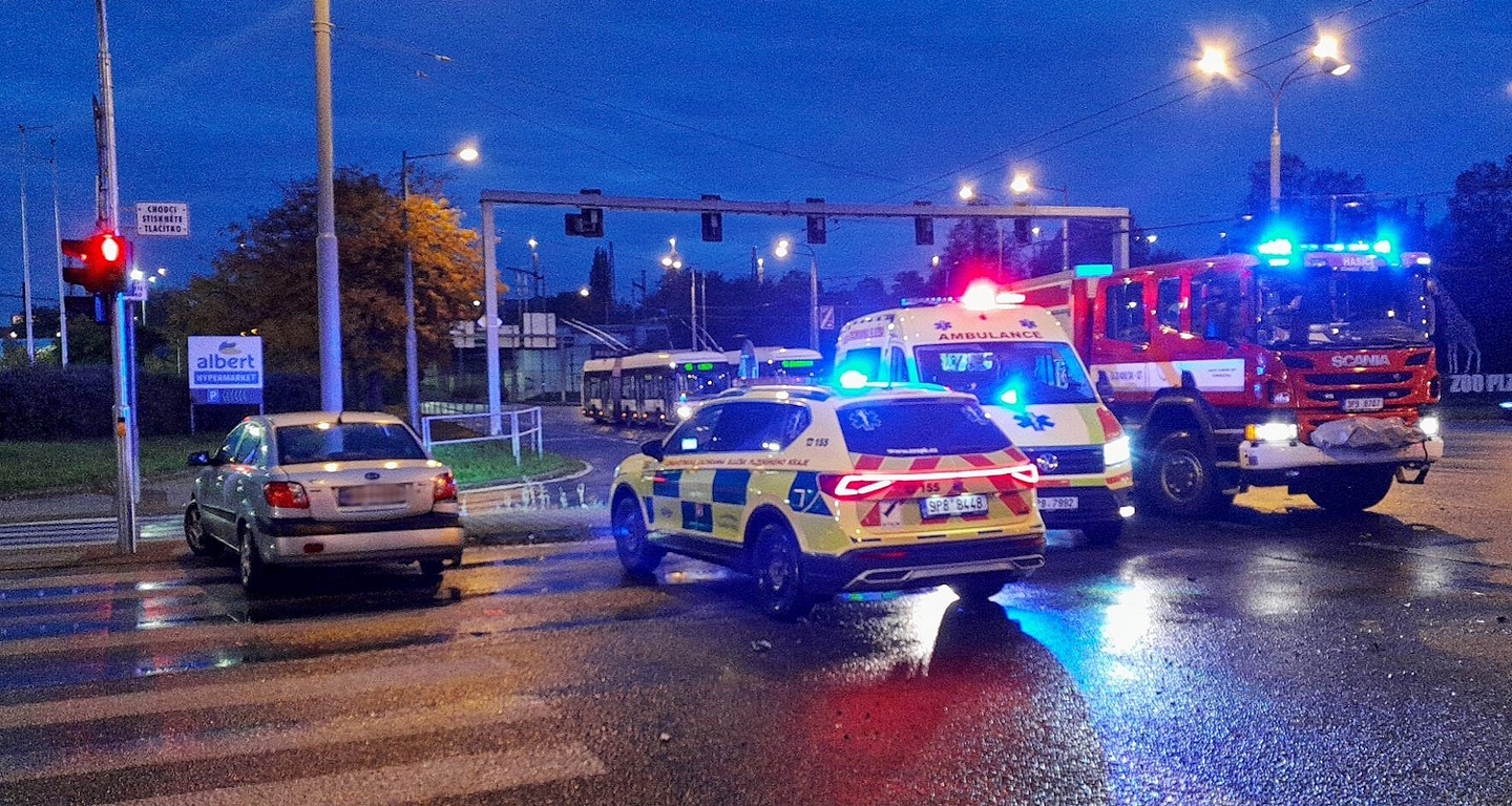 Dnes po sedmé hodině ráno došlo na křižovatce Rokycanské třídy a Jateční ulice v Plzni k dopravní nehodě, během které se střetly dva osobní vozy, Kia a Ford Mondeo.