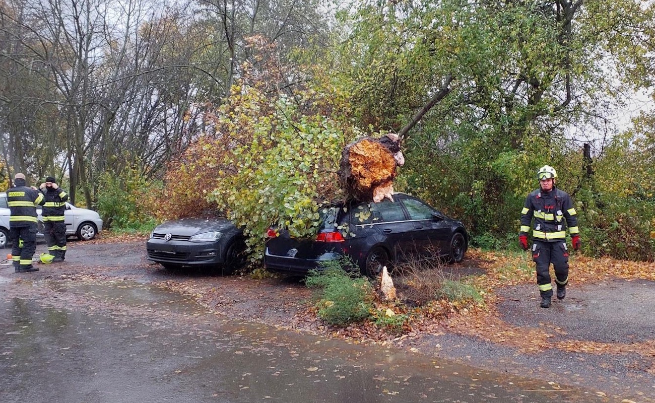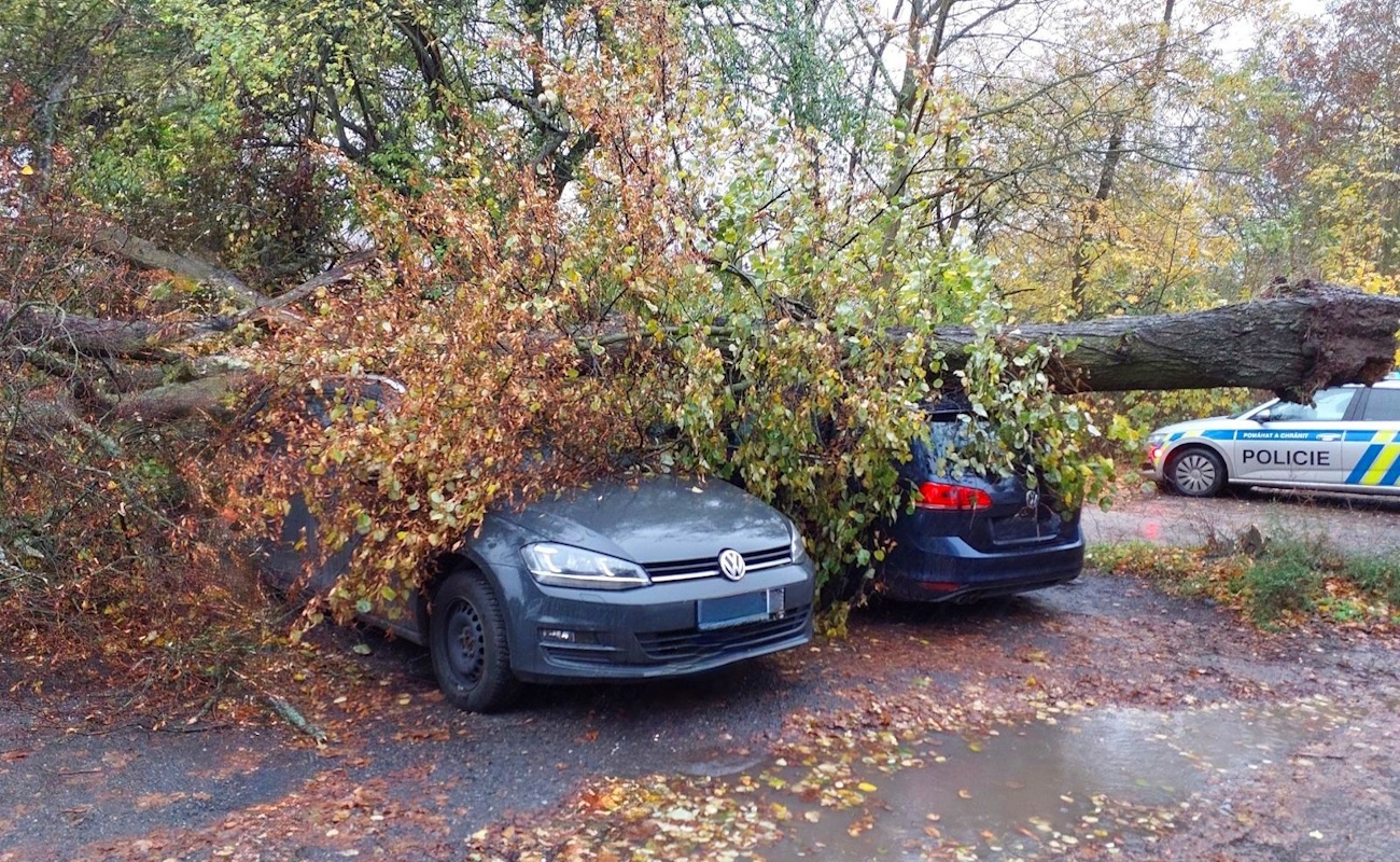 Například v Karlových Varech - Rybářích poškodil vyvrácený strom v Buchenwaldské ulici tři osobní auta.