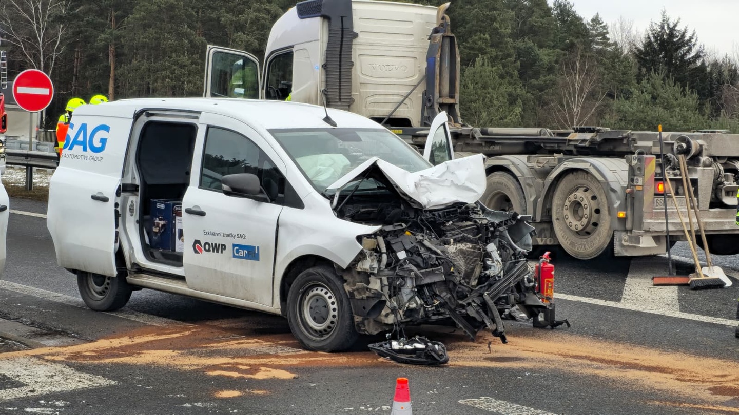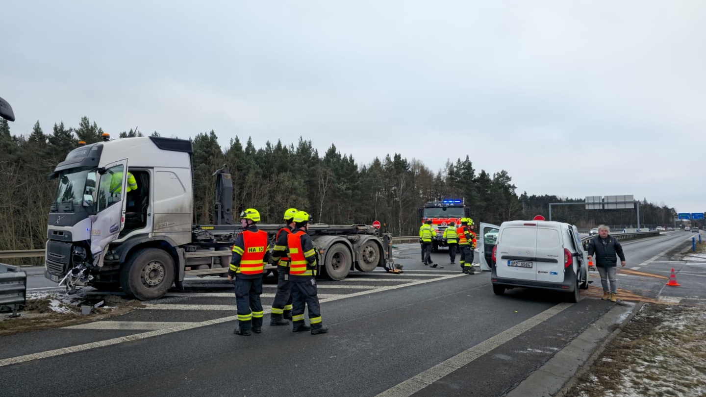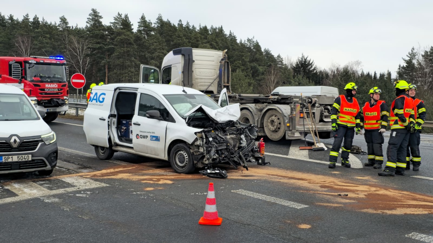 Podle svědků k dopravní nehodě došlo tak, že řidič dodávky jel směrem od Plzně na Sulkov a střetl se s nákladním vozem, který sjížděl z dálnice ve směru na Plzeň a nedal tak menšímu vozu přednost.