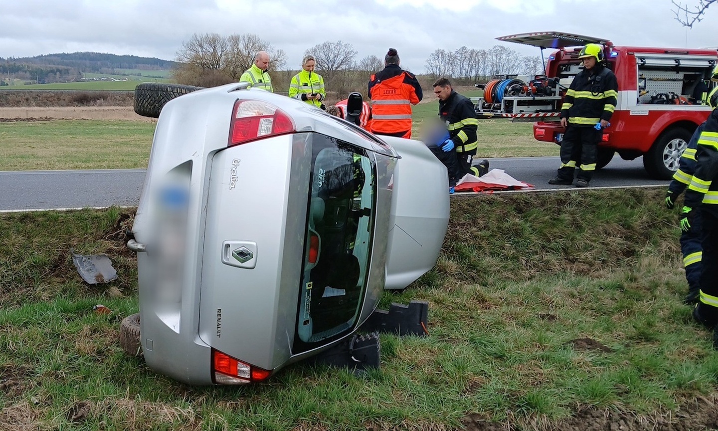 Dnes před devátou hodinou dopoledne došlo na silnici vedoucí z Klatov na Točník k dopravní nehodě, během které osobní vůz Renault Thalia vyjel z vozovky a převrátil se na bok. Z místa bylo hlášeno zranění řidiče, takže k nehodě vyjely všechny záchranné složky.