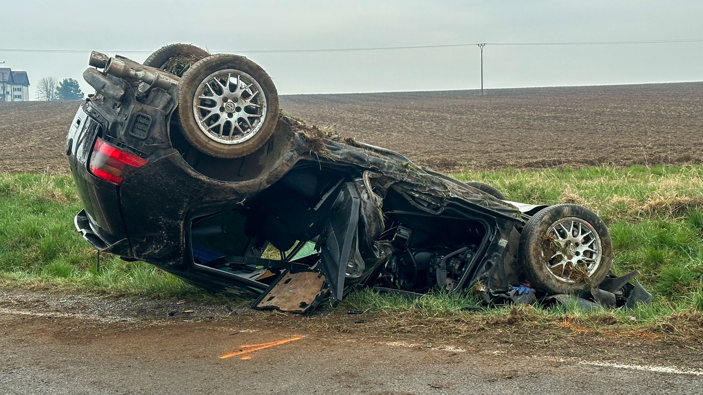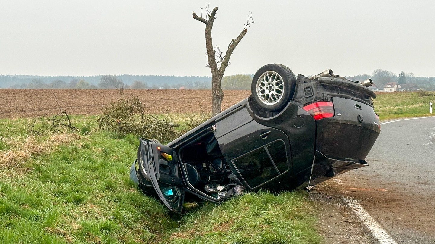 Dnes krátce před půl sedmou večer došlo na silnici mezi Žilovem a Tatinou k velmi vážné dopravní nehodě, během které osobní vozidlo značky Volkswagen vyjelo ze silnice, narazilo do stromu a skončilo převrácené na střeše.