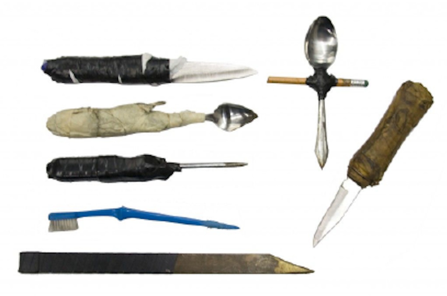 Ukázka zbraní, které si vězni sami vyrábějí