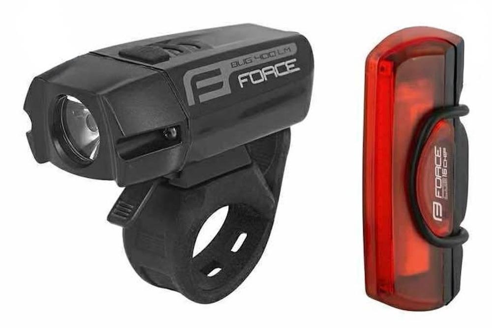 Na kole jsou týden staré pláště, nové přední a zadní světlo Force Glare USB a kovový držák na telefon.