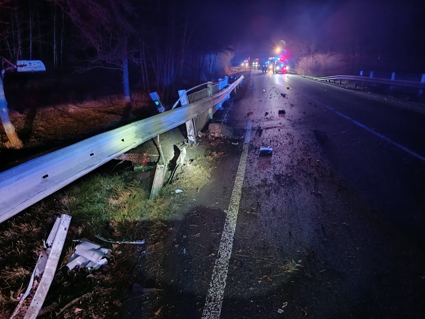 Včera kolem půl osmé večer došlo na silnici č. 605 mezi Vysočany a Muckovem na Tachovsku k dopravní nehodě, během které vůz značky BMW doslova vyletěl ze silnice, zdemoloval svodidla a skončil mimo komunikaci.