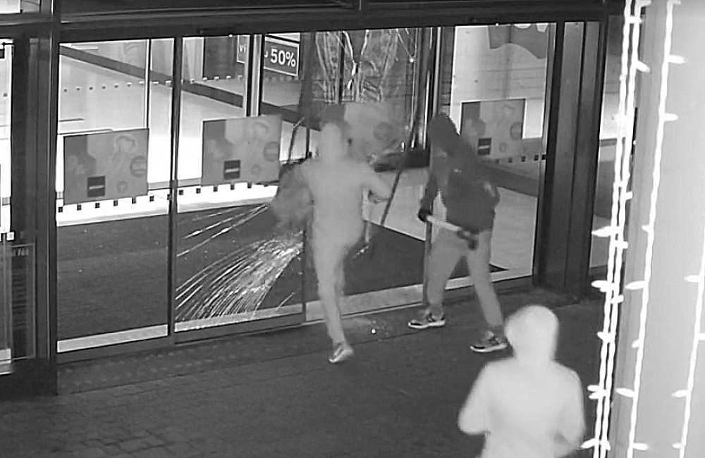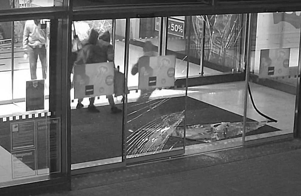 Podle našich informací byla asi sedmičlenná skupina zlodějů velice dobře organizovaná a sehraná. Do objektu vstoupili podzemními garážemi vyzbrojeni mimo jiné velikým páčidlem a železnými trubkami. V garážích železnou trubkou rozbili skleněné dveře, poté celá skupina vyběhla do obchodního domu, kde pomocí trubky vypáčili kovovou vstupní roletu obchodu.
