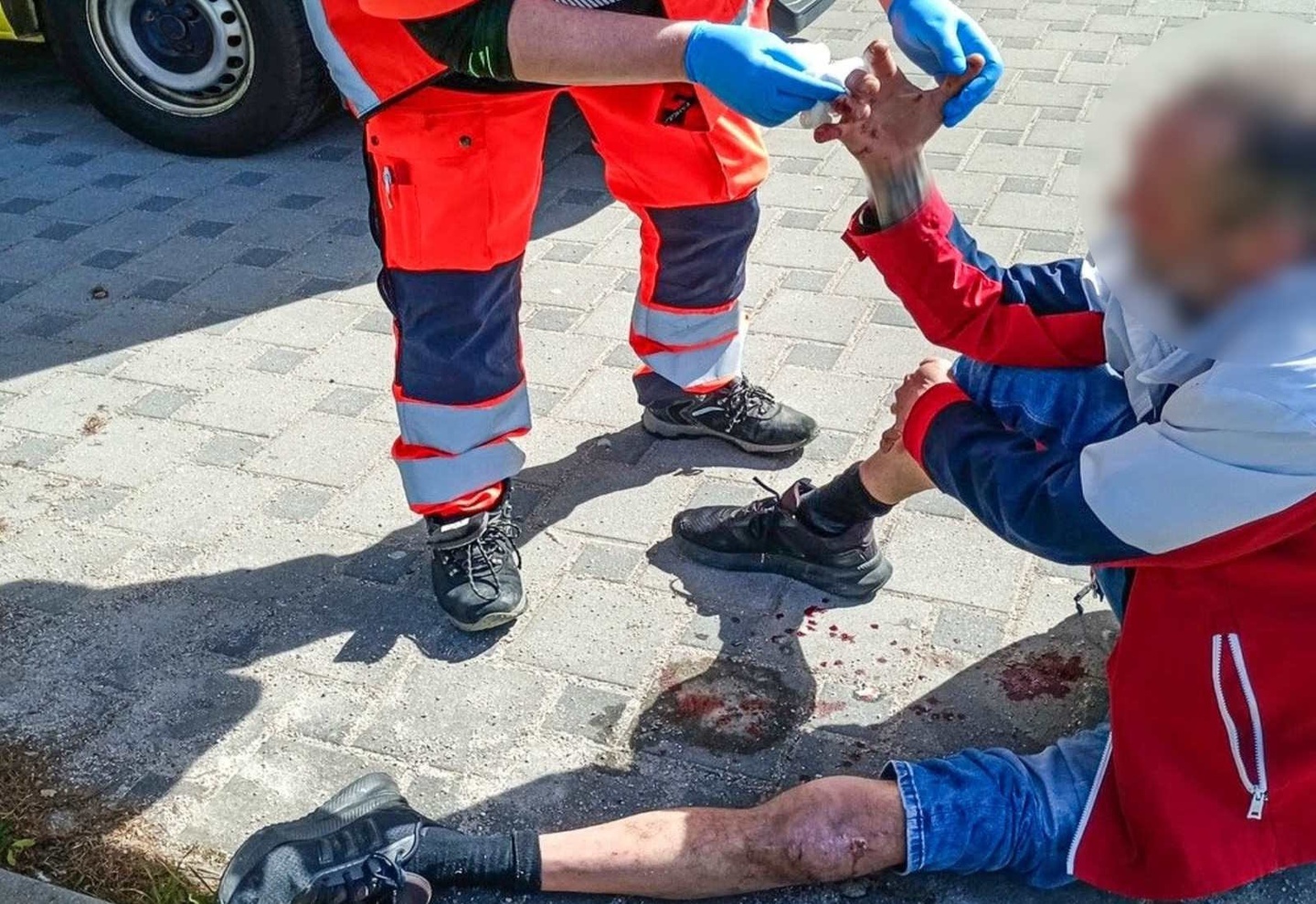 Muž uvedl, že uklouzl na písku a pravděpodobně si při pádu o střepy rozřízl ruku. Stěžoval si také na bolest hlavy a už při prvním pohledu bylo zřejmé, že zranění není malé, měl podlitinu na obličeji, otok nad okem, krvácel z nosu a měl řadu oděrek na rukou. Nejvážnější bylo poranění ruky, ze kterého krvácel," popsala tisková mluvčí městské policie