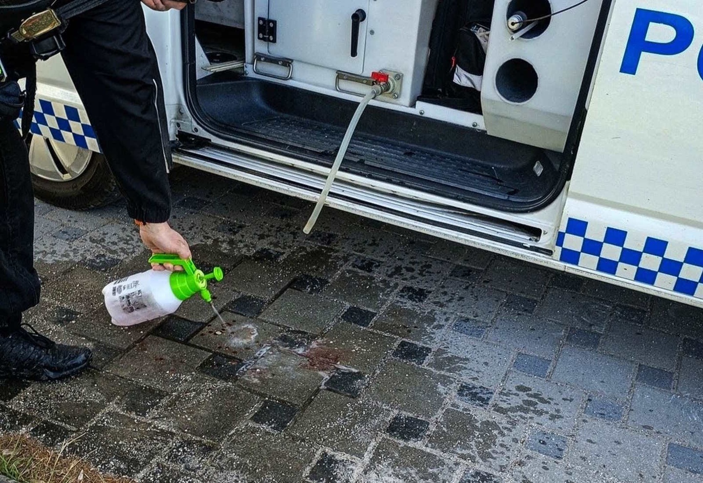 Po ukončení zásahu strážníci ještě očistili a vydesinfikovali místo od krve.